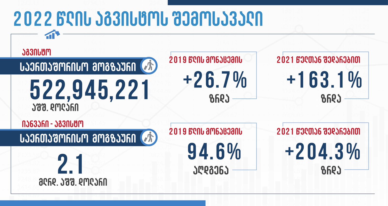 "ტურიზმიდან საქართველომ წელს 2.1 მილიარდი დოლარის შემოსავალი მიიღო"