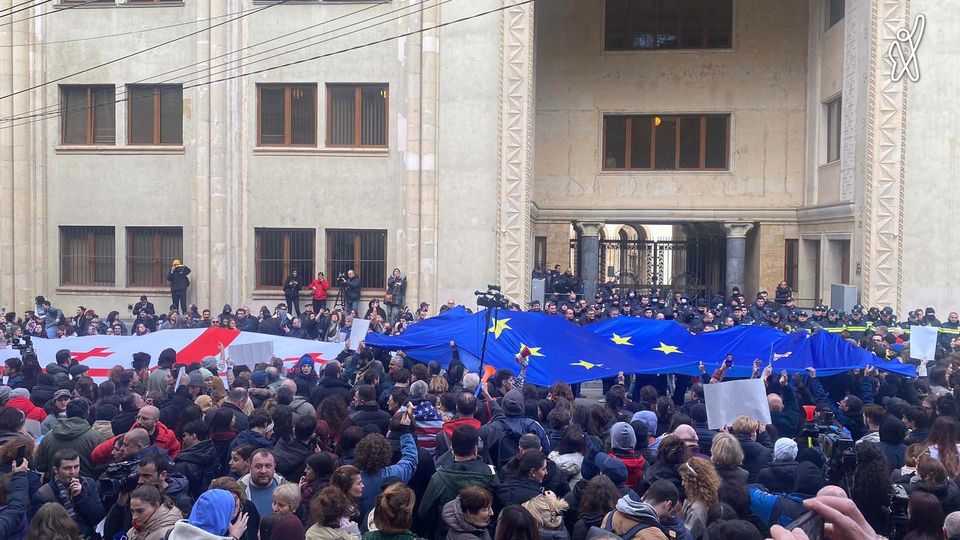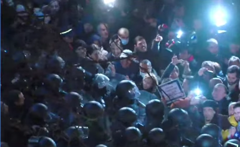 სამართალდამცველებმა პარლამენტთან წყლის ჭავლი გამოიყენეს