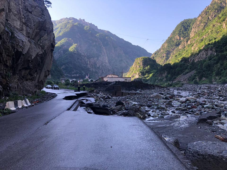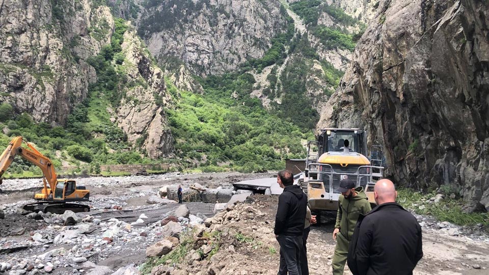 ლარსთან დაზიანებული გზის აღდგენის სამუშაოები დაიწყო