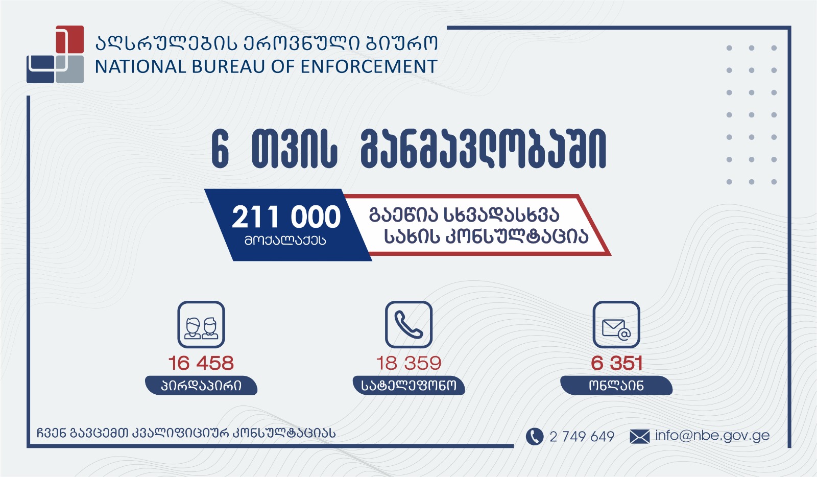 აღსრულების ეროვნული ბიურო 2024 წლის 6 თვის განმავლობაში გაწეული კონსულტაციის სტატისტიკას აქვეყნებს