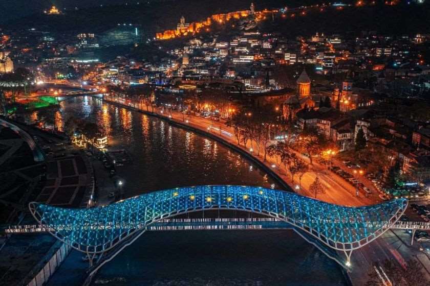 თბილისის ანძა და "მშვიდობის ხიდი" ევროკავშირის დროშის ფერებში განათდა