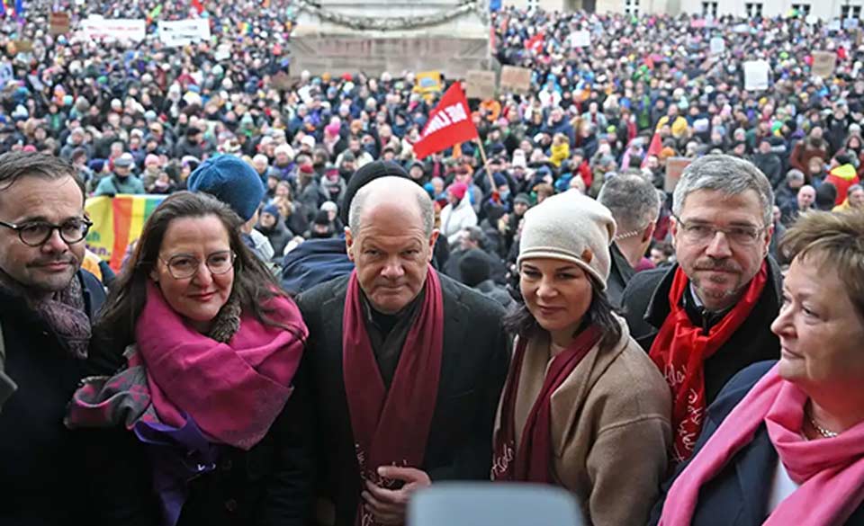 გერმანიაში ათასობით პირმა, მათ შორის შოლცმა მემარჯვენე რადიკალიზმის საწინააღმდეგო აქციაში მიიღო მონაწილეობა