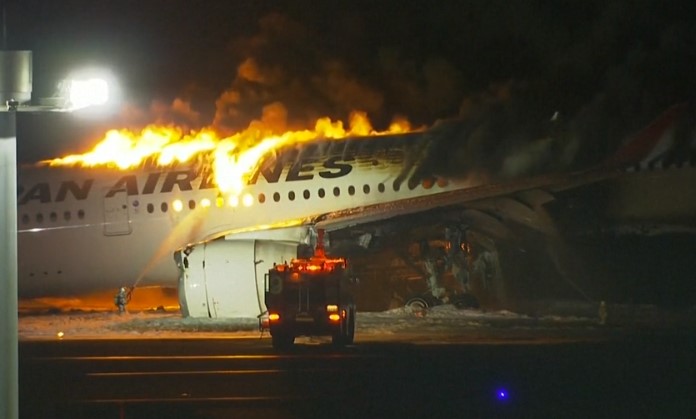 იაპონიის ავიახაზების თვითმფრინავს ჰანედას აეროპორტში დაშვებისას ცეცხლი გაუჩნდა