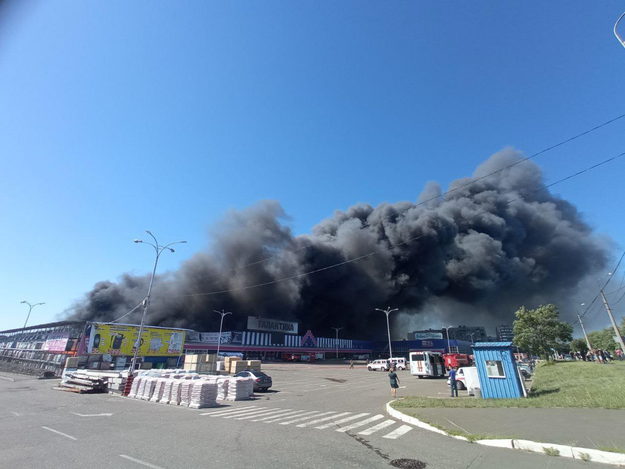 ოკუპირებულ დონეცკში სავაჭრო ცენტრი "გალაქტიკა" იწვის