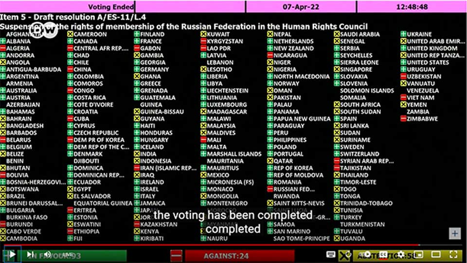 გაერო-ს ადამიანის უფლებათა საბჭოში რუსეთს წევრობა შეუჩერდა