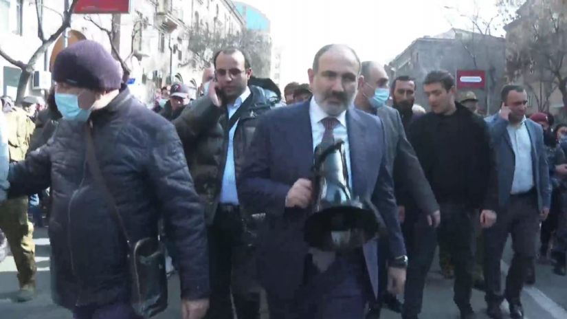ფაშინიანი მხარდამჭერებთან ერთად ერევანში მსვლელობას მართავს