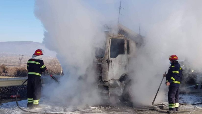 ცენტრალურ ავტომაგისტრალზე ევაკუატორი დაიწვა