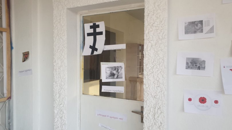 სამირა ბაირამოვამ "ალტ-ინფოს" ოფისის კარზე ანწუხელიძის ფოტო და ანტირუსული წარწერები გამოაკრა