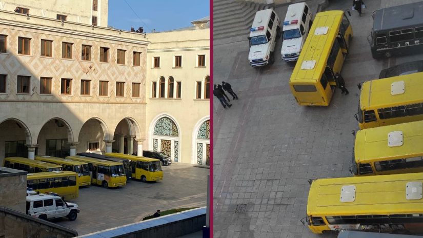 პარლამენტის ეზოში რამდენიმე ავტობუსით სამართალდამცავები შეიყვანეს
