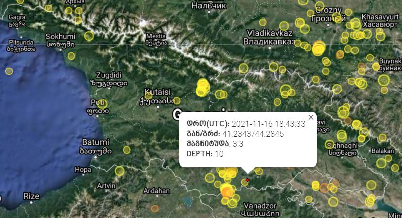 საქართველოში კიდევ ერთი მიწისძვრა მოხდა