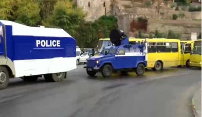 საპროტესტო მსვლელობის პარალელურად, სპეცრაზმი და წყლის ჭავლის მანქანები გამოჩნდნენ