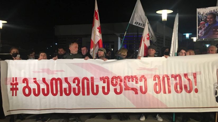 რუსთავის ციხესთან სააკაშვილის მხარდამჭერებმა მდუმარე აქცია გამართეს