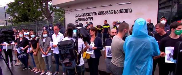 მედიის წარმომადგენლებმა შინაგან საქმეთა სამინისტროსთან მდუმარე აქცია გამართეს