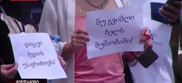 მედიის წარმომადგენლებზე ძალადობა მთავრობის კანცელარიასთან გააპროტესტეს
