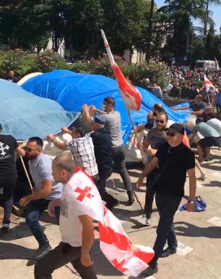 რადიკალური ჯგუფები „სირცხვილიას“ ოფისთან მივარდნენ და ძალადობენ