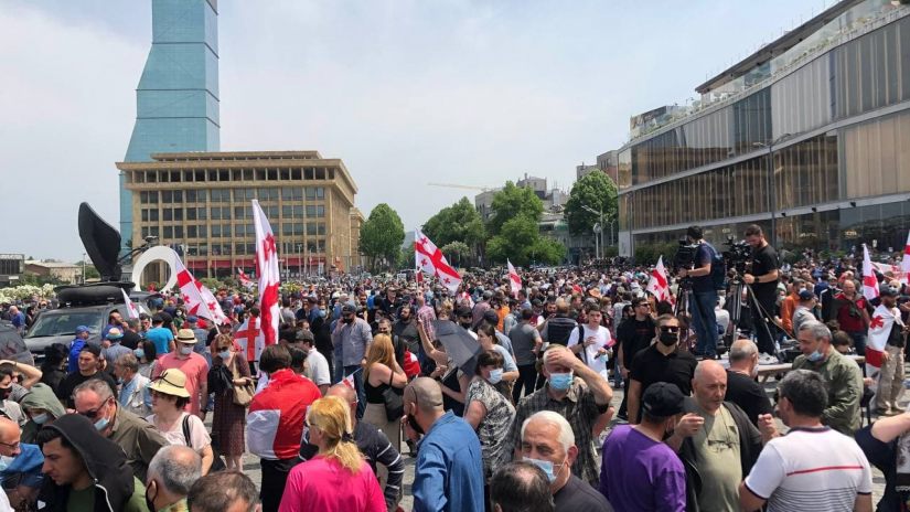 თბილისში, რესპუბლიკის მოედანზე „ნამახვანჰესის“ მშენებლობის მოწინააღმდეგეები აქციას მართავენ