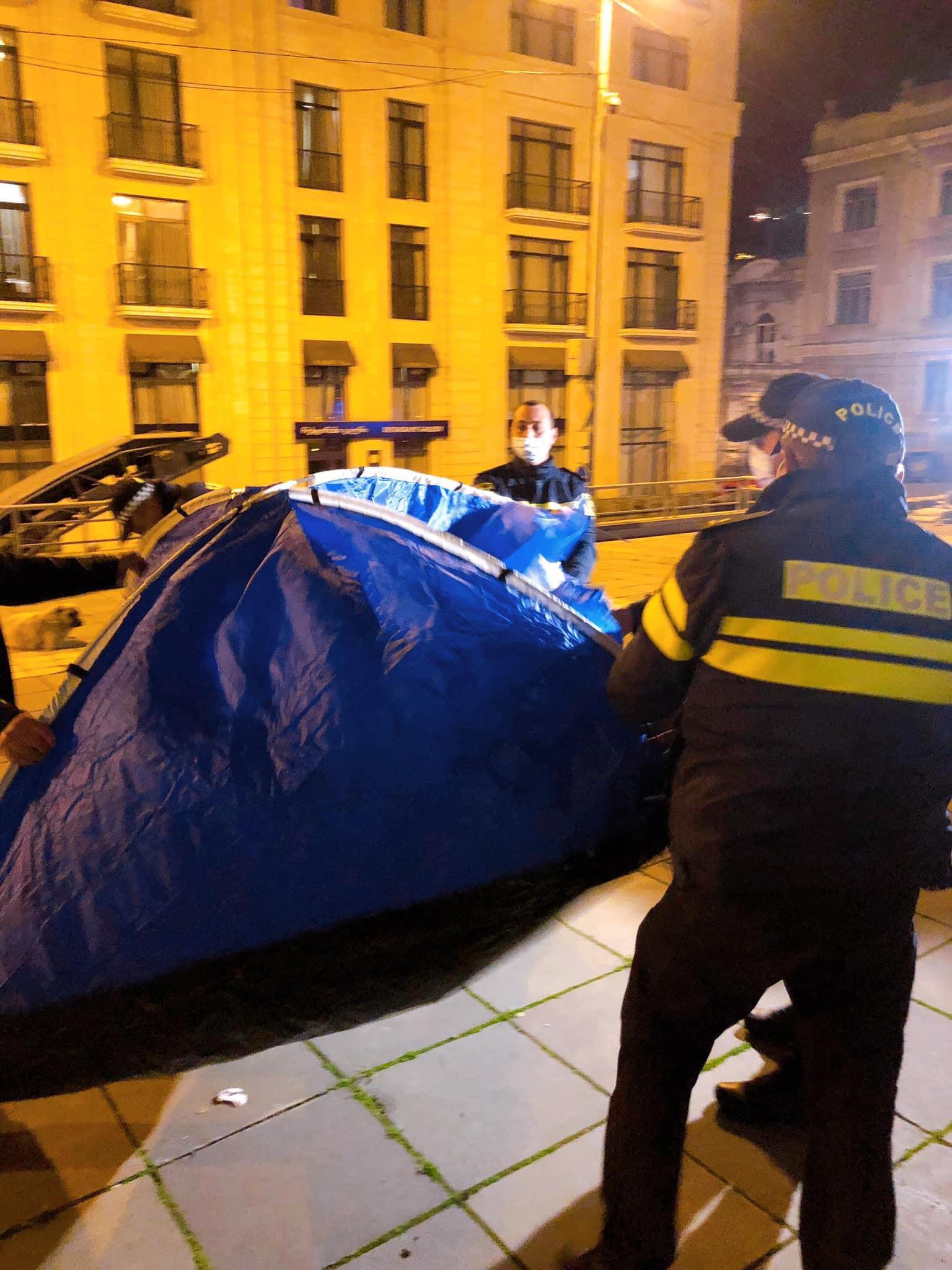 პოლიციამ დემონსტრანტს მთავრობის ადმინისტრაციასთან გაშლილი კარავი ჩამოართვა