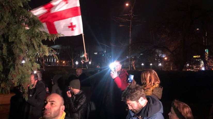 თბილისში, სასტუმრო "ვინოტელთან" სამოქალაქო აქტივისტები აქციას მართავენ