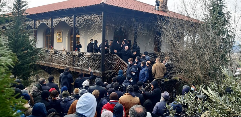 ჭყონდიდის ეპარქიაში დაპირისპირებისას აივნის მოაჯირი ჩამოინგრა, არიან დაშავებულები [ვიდეო]