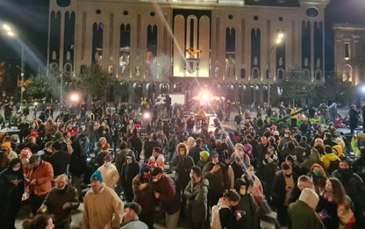 რუსეთის საელჩოს ყოფილ შენობასთან ზაზა გახელაძის გათავისუფლების მოთხოვნით აქცია იმართება