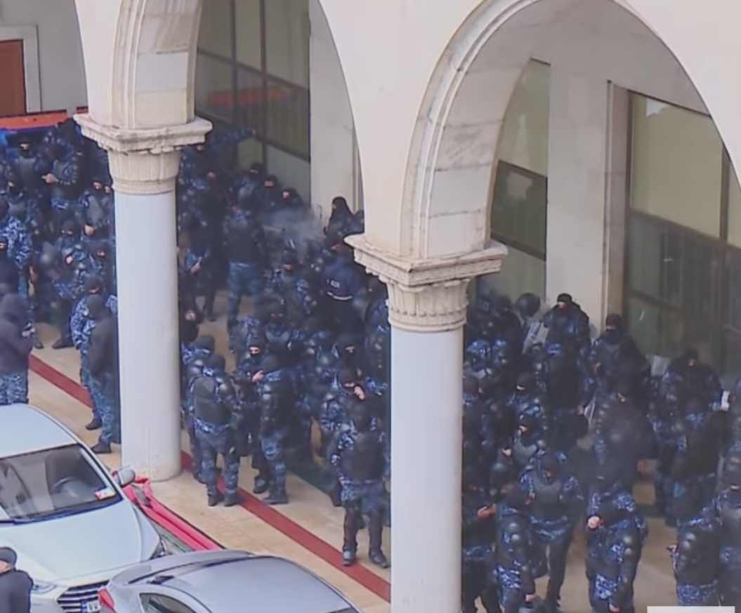 დეპუტატები პარლამენტში საპოლიციო ძალების დახმარებით და შეძახილების ფონზე შედიან