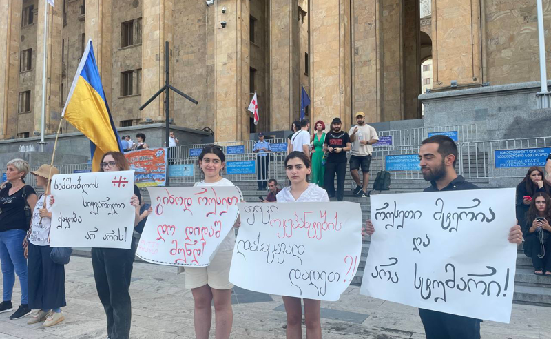 "რუსეთი მტერია და არა სტუმარი!" : პარლამენტთან აქცია იმართება