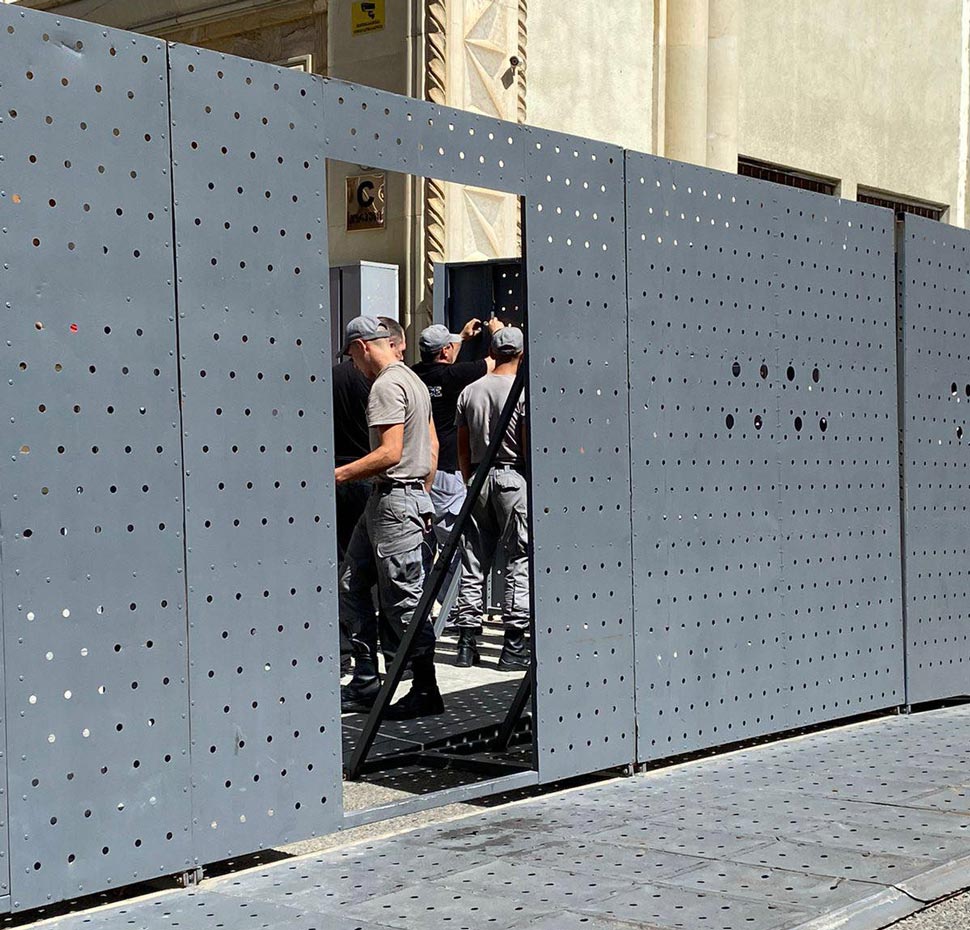 პარლამენტის შენობის შესასვლელთან განთავსებულ რკინის კონსტრუქციას შლიან