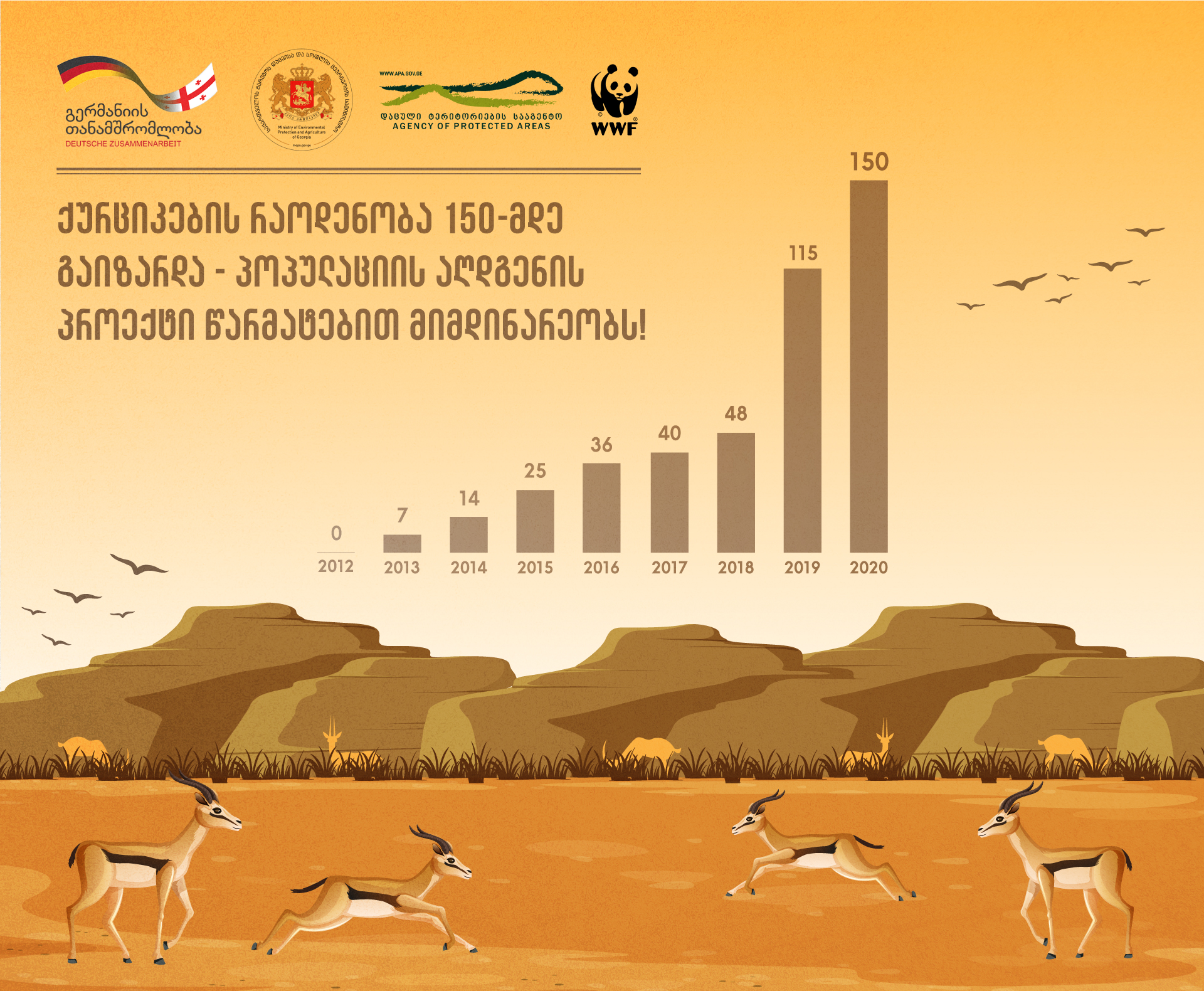 პოპულაციის აღდგენის პროექტის ფარგლებში, საქართველოში ქურციკების რაოდენობა უკვე 150-მდე გაიზარდა