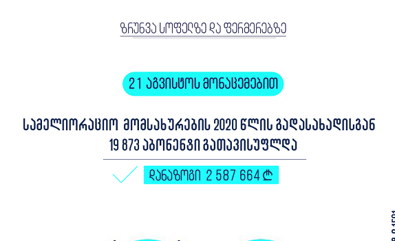 სამელიორაციო მომსახურების 2020 წლის გადასახადისგან 19 873 აბონენტი გათავისუფლდა
