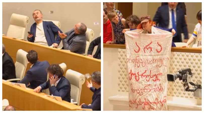 პლენარული სხდომის დროს "ქართული ოცნების" წევრ დეპუტატებს რუსული რუბლის კუპიურები დააყარეს