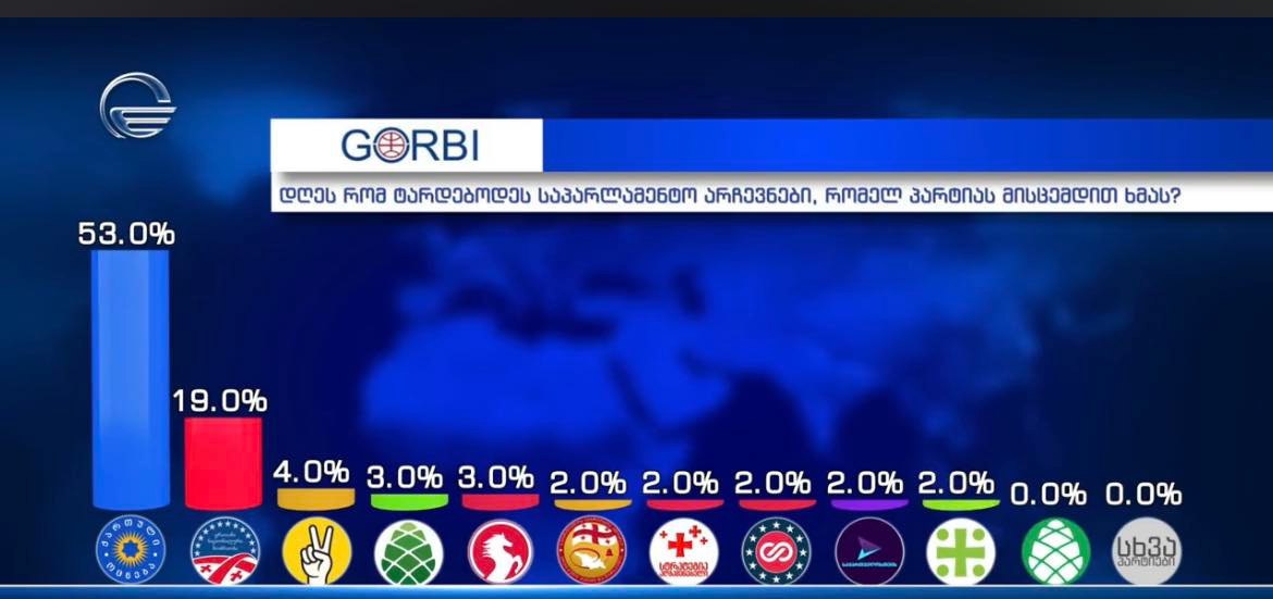 "იმედის" დაკვეთით ჩატარებული GORBI-ს კვლევა: "ოცნება" – 53%, ენმ –19%,