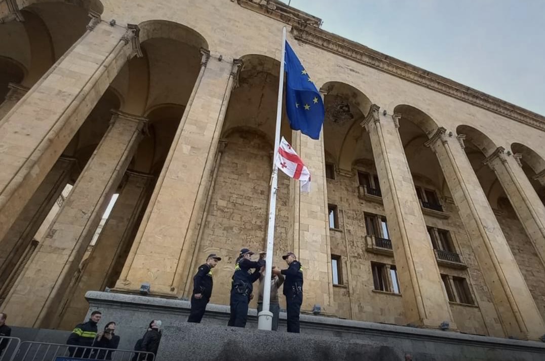პარლამენტთან ევროკავშირის დროშა პოლიციელებმა დააბრუნეს