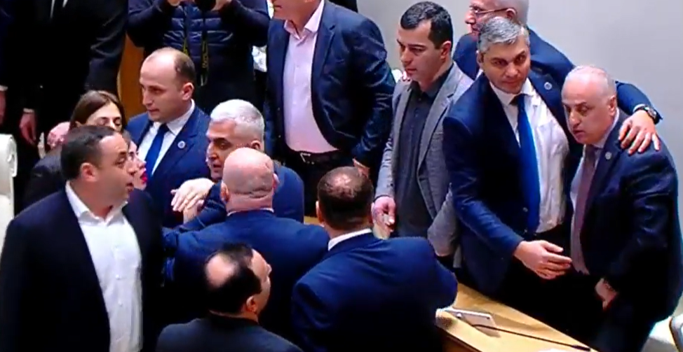 პარლამენტის სხდომათა დარბაზში ხმაური და დაპირისპირებაა