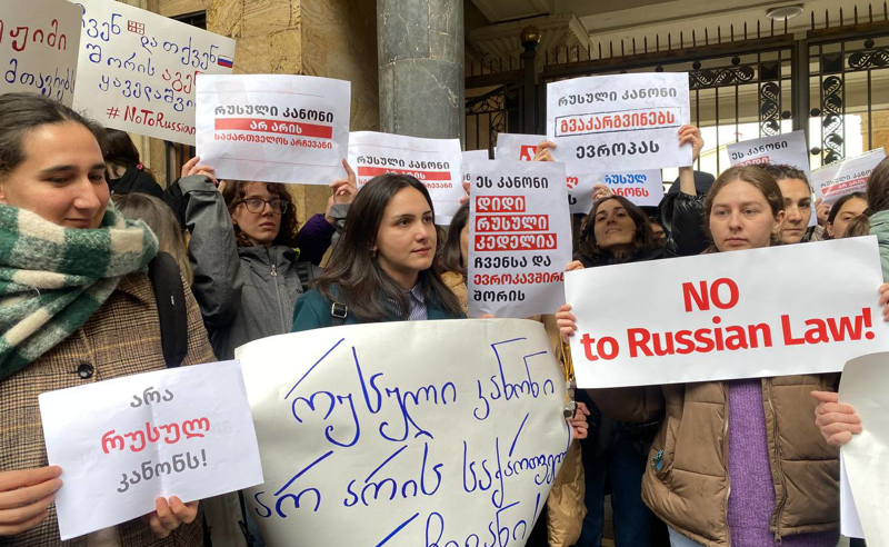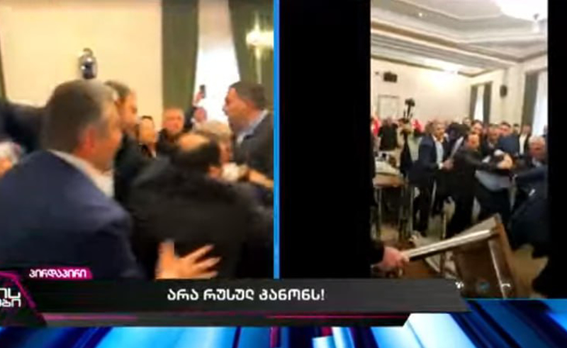 პარლამენტში, სადაც "აგენტების" შესახებ კანონპროექტების განხილვა უნდა დაიწყოს, შეხლა-შემოხლაა