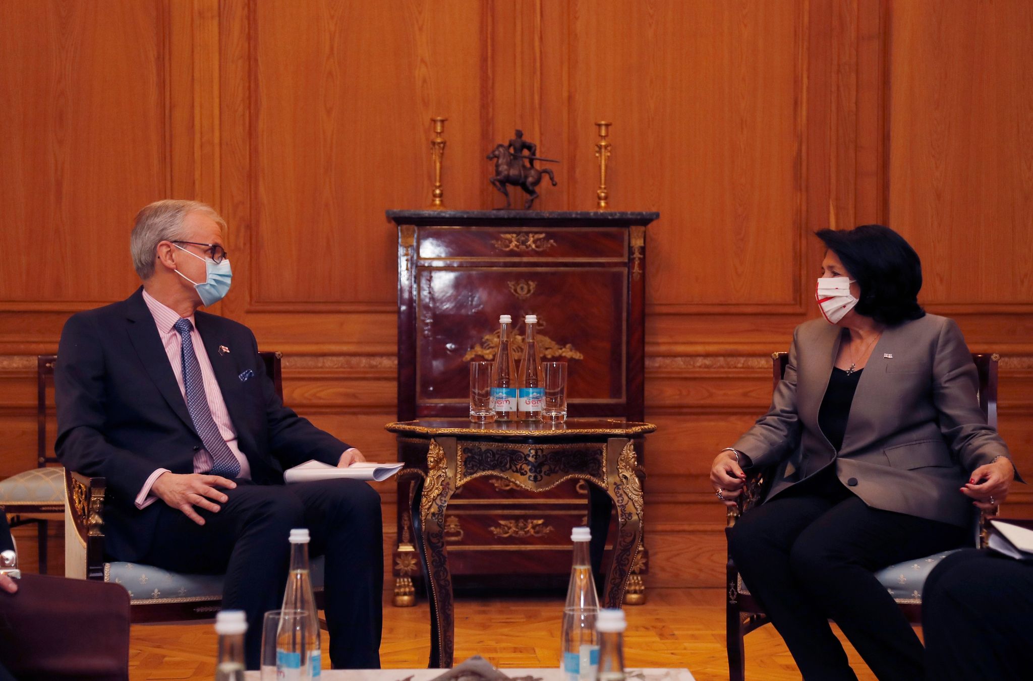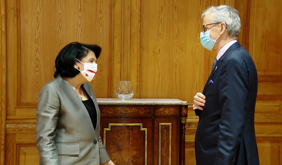 ორბელიანების სასახლეში სალომე ზურაბიშვილისა და კრისტიან დანიელსონის შეხვედრა მიმდინარეობს