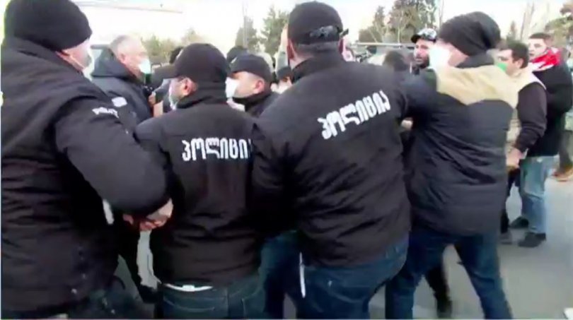 "წიხლებს გვირტყამდნენ"– ენმ–ის ოფისიდან აქტივისტები და პოლიტიკოსები გამოჰყავთ