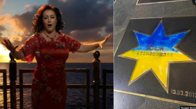 В Грузии звезду Тамары Гвердцители закрасили в цвета украинского флага