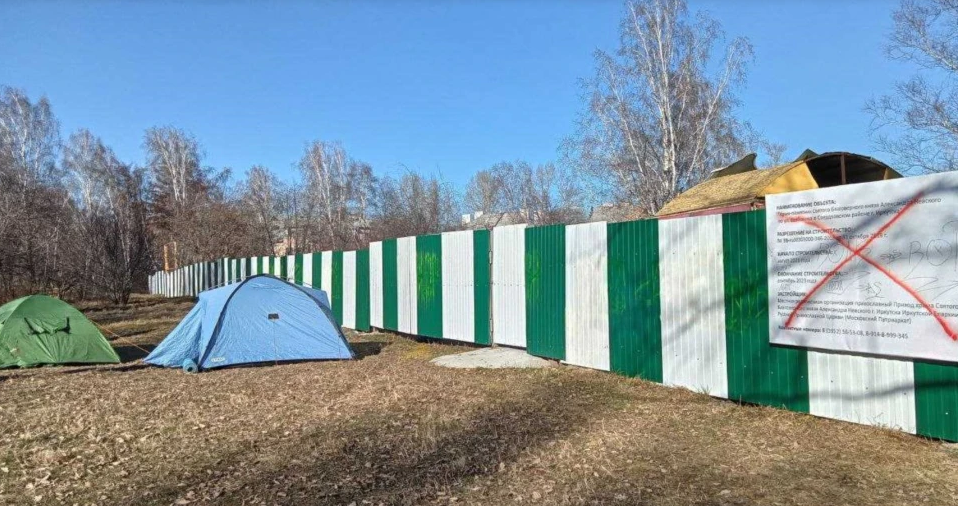 Жители Иркутска разбили лагерь, протестуя против строительства храма