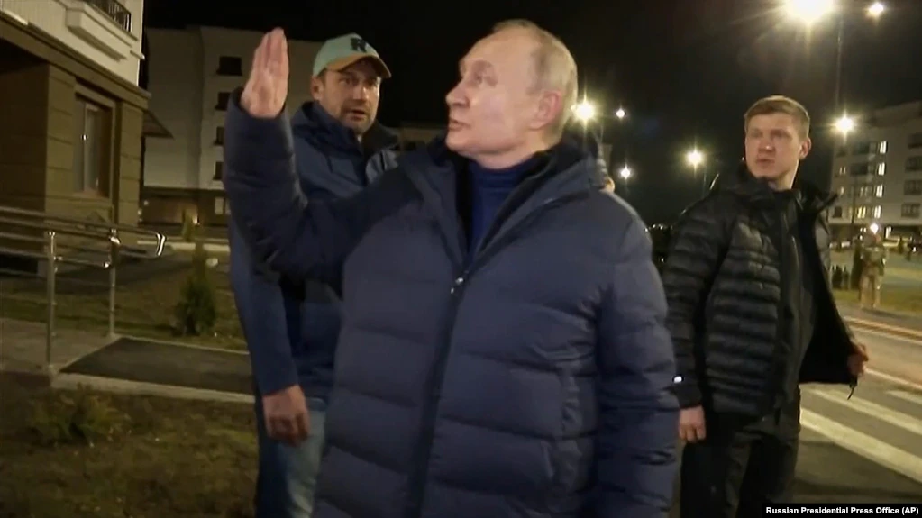 На запись поездки Путина в Мариуполь попал выкрик: «Это всё напоказ!»