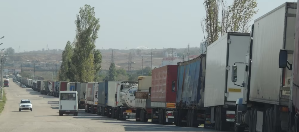 На Керченскую переправу со стороны России в очереди ожидают сто грузовиков