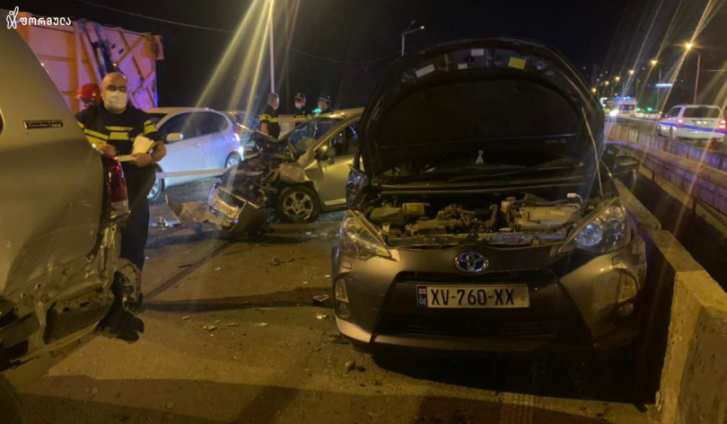 გლდანის ხიდებთან ერთმანეთს 5 ავტომობილი შეეჯახა