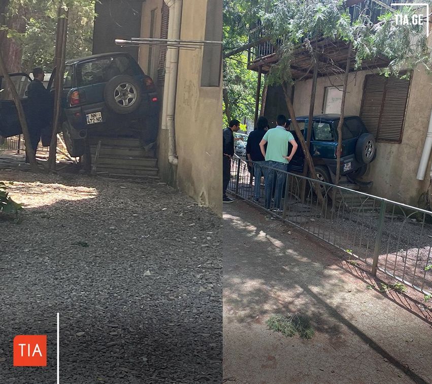 წერეთელზე ავტომანქანა 5-სართულიანი შენობის 1 სართულზე შევარდა