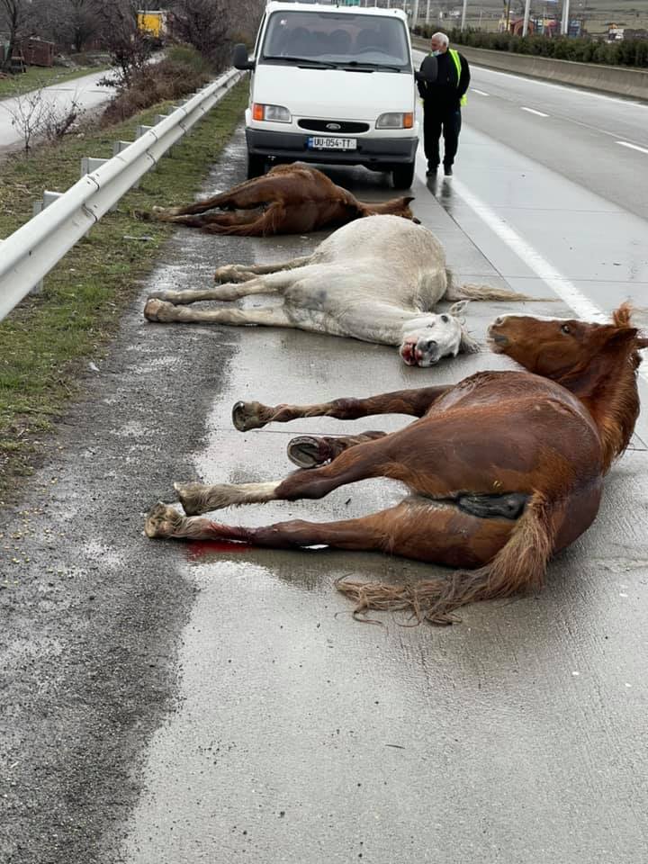 ავტობანზე მანქანა სამ ცხენს დაეჯახა
