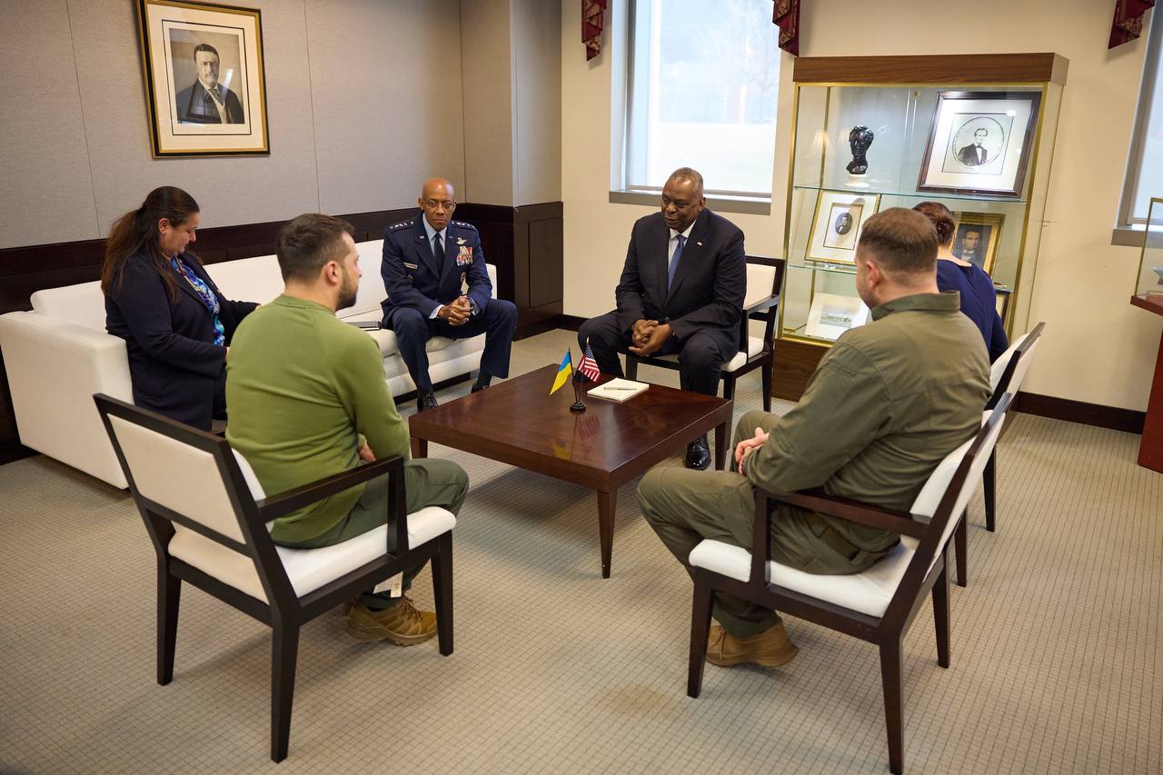 ზელენსკიმ აშშ–ში ვიზიტი პენტაგონის ხელმძღვანელთან და გენერალთან შეხვედრით დაიწყო