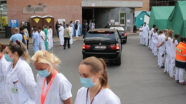 ბელგიელმა მედიკოსებმა ქვეყნის პრემიერს პროტესტის ნიშნად ზურგი შეაქციეს (ვიდეო)
