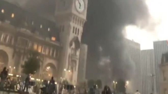 პარიზში რკინიგზის სადგური იწვის (ვიდეო)