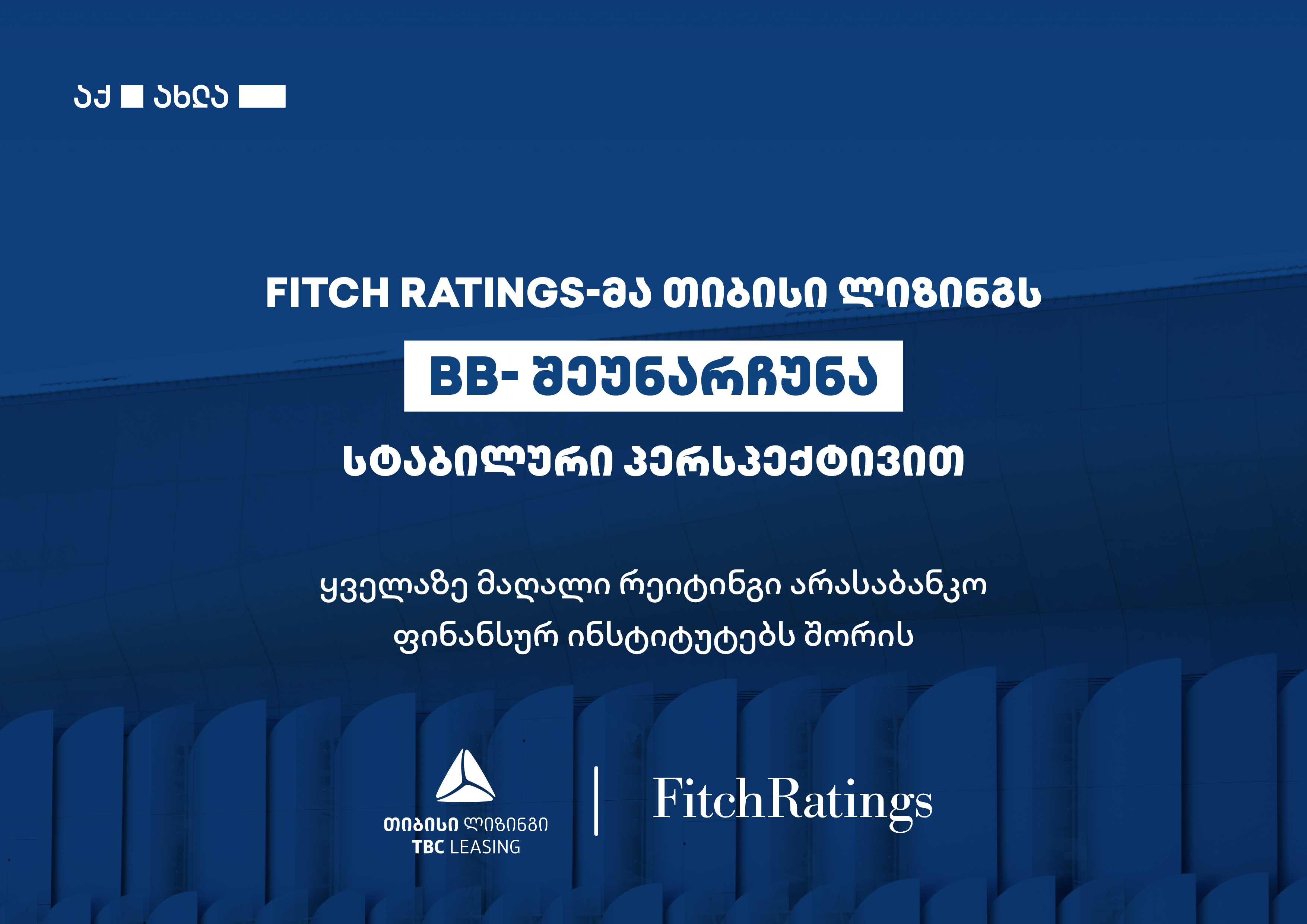 Fitch Ratings-მა თიბისი ლიზინგს „BB-„ სტაბილური პერსპექტივით შეუნარჩუნა