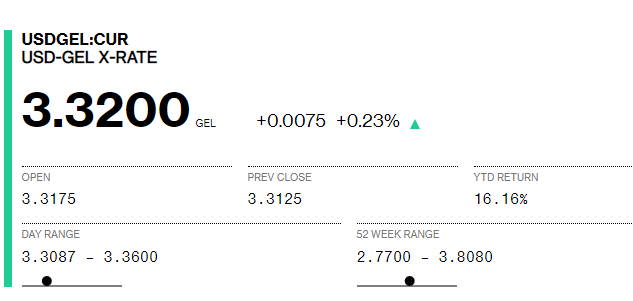 Bloomberg-ს სავაჭრო სისტემაში 1 დოლარის ფასი 3.32 ლარია