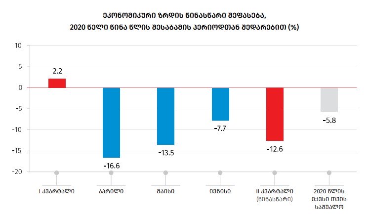 წინასწარი შეფასებით, ივნისში საქართველოს ეკონომიკა 7.7%–ით შემცირდა