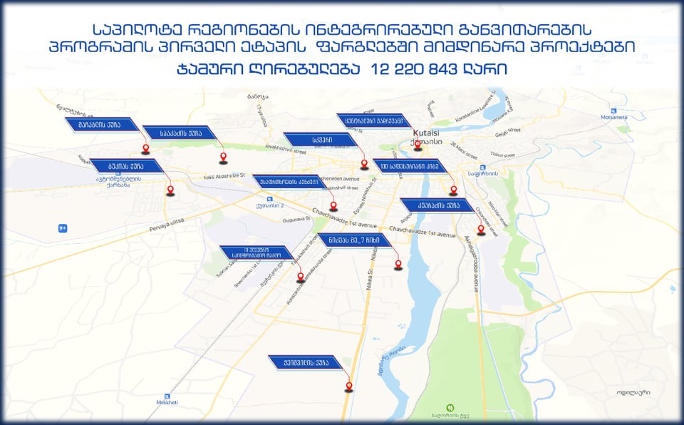 „2022 წელს საპილოტე რეგიონების ინტეგრირებული განვითარების პროგრამის“ ფარგლებში ქუთაისში 12 220 843 ლარის ღირებულების ინფრასტრუქტურული პროექტები განხორციელდება